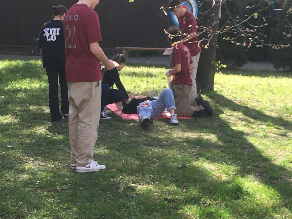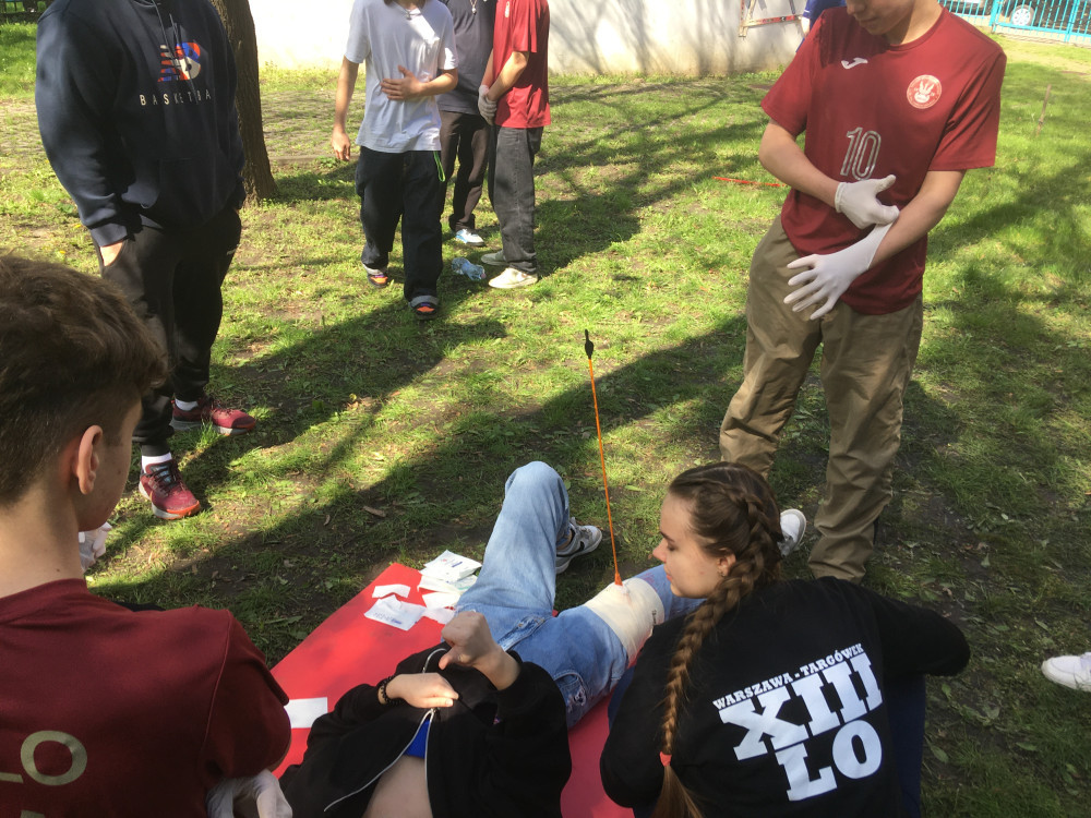 W dniu 20.04.2023 r. w ZS nr 128 przy ul. Turmonckiej 2, uczniowie klas pierwszych naszego liceum wzięli udział w finale Dzielnicowych Dni Bezpieczeństwa Gminy Targówek. Uczestniczyli w rozwiązywaniu określonych zadań z pierwszej pomocy/wypadek zbiorowy, postrzał z łuku, epilepsja, złamania, opatrywanie ran i inne/, strzelectwa, testu wiedzy o bezpieczeństwie, oraz poczęstunku/ grochówka wojskowa/. Wykazali się nieprzeciętnymi umiejętnościami i godnie reprezentowali XIII Liceum Ogólnokształcące z Oddziałami Dwujęzycznymi im. płk. L. Lisa - Kuli.